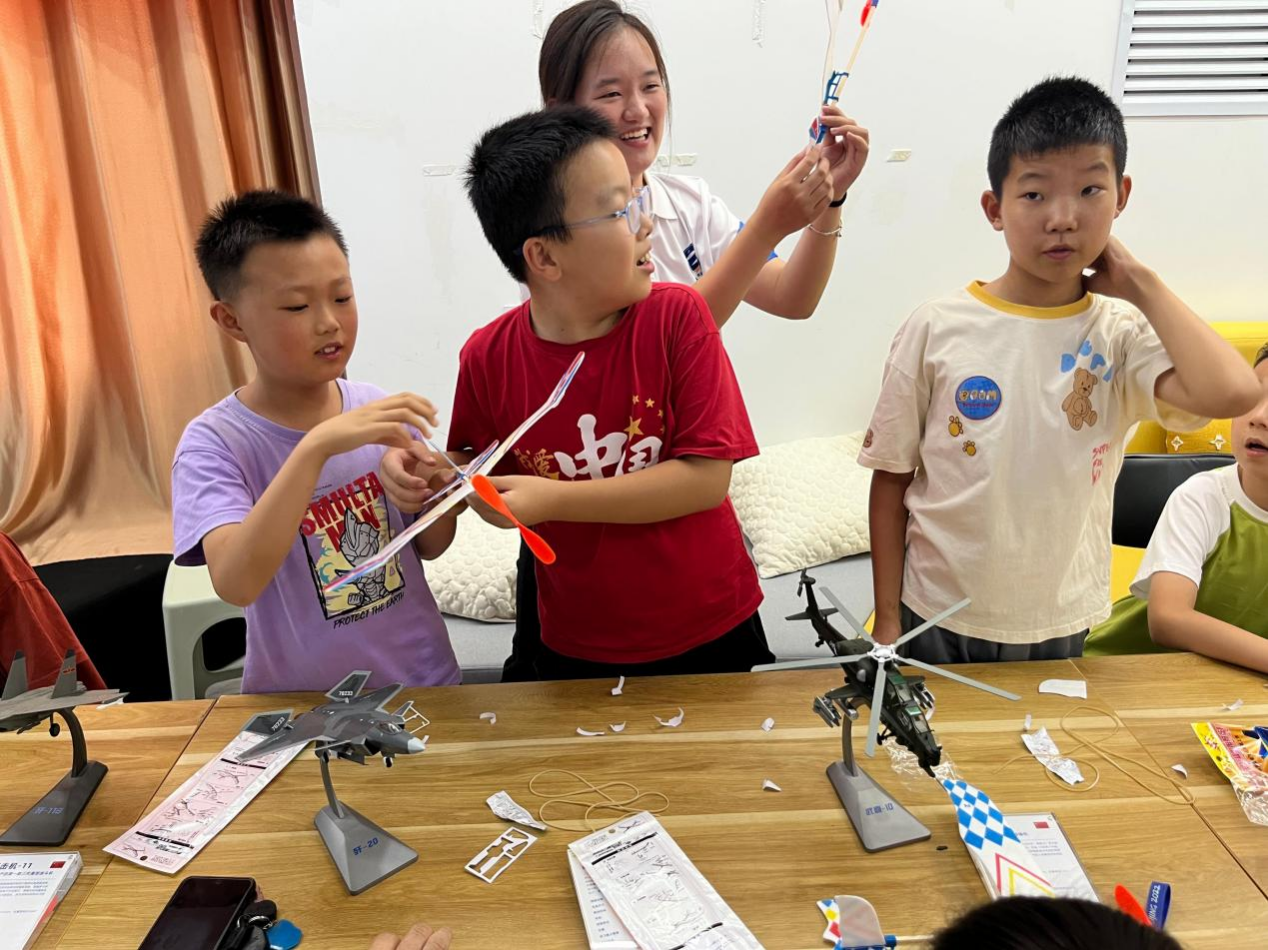在实践团成员的悉心指导下,孩子们纷纷亲自动手组装航模,小心翼翼地组装零件、认真调试设备。当看到自己亲手制作的航模成功飞向天空时,孩子们的脸上绽放出灿烂的笑容,眼中闪烁着对科技的好奇与探索的光芒。这一过程不仅锻炼了孩子们的动手能力和创新思维,更让他们对航空科技有了更直观、更深刻的认识。