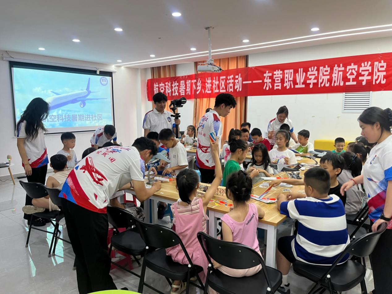 近日,东营职业学院航空学院“中国红、蓝天梦”社会实践团走进东营经济技术开发区锦华、锦辉、惠泽等社区,开展“航空科技进社区”系列活动。此次活动围绕“科技创新研学”主题,为200多名社区儿童和青少年带来了沉浸式的航空科技体验,有力推动了基层科普工作创新发展。