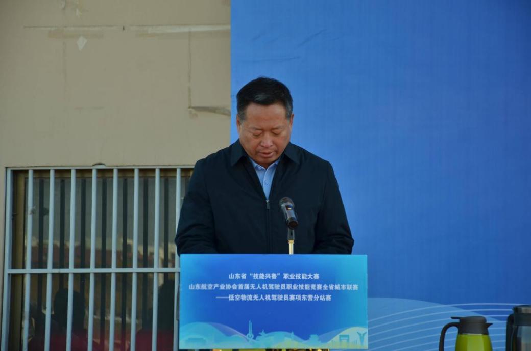 东营职业学院党委书记杜振波在致辞中强调,东营作为全省唯一首批民用无人驾驶航空试验区和C919大飞机试飞基地,在全省低空经济布局中具有重要战略地位。本次竞赛不仅是落实省委、省政府“技兴齐鲁 乐业山东”培训行动的具体实践,更是推动东营无人机物流航路建设、促进低空产业创新发展的重要支撑。山东航空产业协会副秘书长杨侠、东营市工业和信息化局四级调研员许建洲分别致辞,一致肯定大赛在推动高素质技能人才培养、服务低空经济产业升级方面的积极作用,并对赛事开幕表示祝贺。