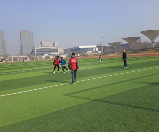 实践团队走进德州市体育公园。绿茵场上,队员们与孩子们一同奔跑追逐,传球、射门,欢笑声此起彼伏。他们耐心指导、分享技巧,在互动中传递温暖与陪伴。汗水与阳光交织,这段充满活力的陪伴时光,不仅让孩子们收获了快乐,也让队员们重温了纯真,在共同成长中留下了温暖而明亮的记忆。